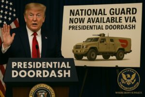WASHINGTON, D.C. – In a bold leap forward for executive overreach and logistics innovation, President Trump has quietly rolled out Presidential DoorDash; a new on-demand